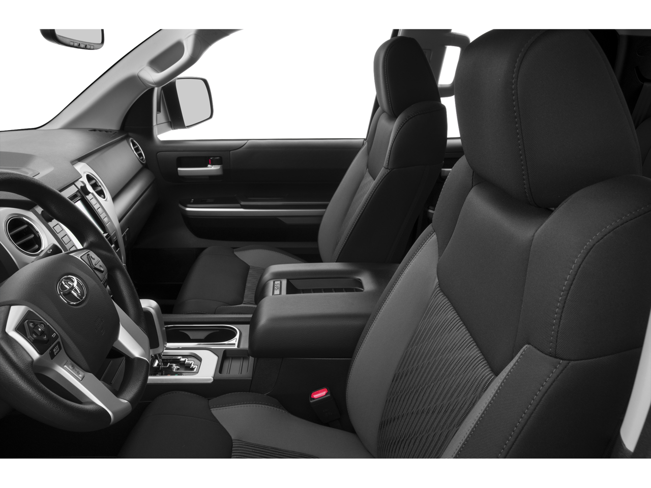 Inside, the Tundra SR5 offers a spacious and comfortable cabin, with features like front bucket seats, a tilt/telescopic steering wheel, and an auto-dimming rearview mirror. The available HomeLink Universal Transceiver and Bluetooth® connectivity keep you connected and in control, while the backup camera and other driver-assistance technologies help you navigate with confidence.