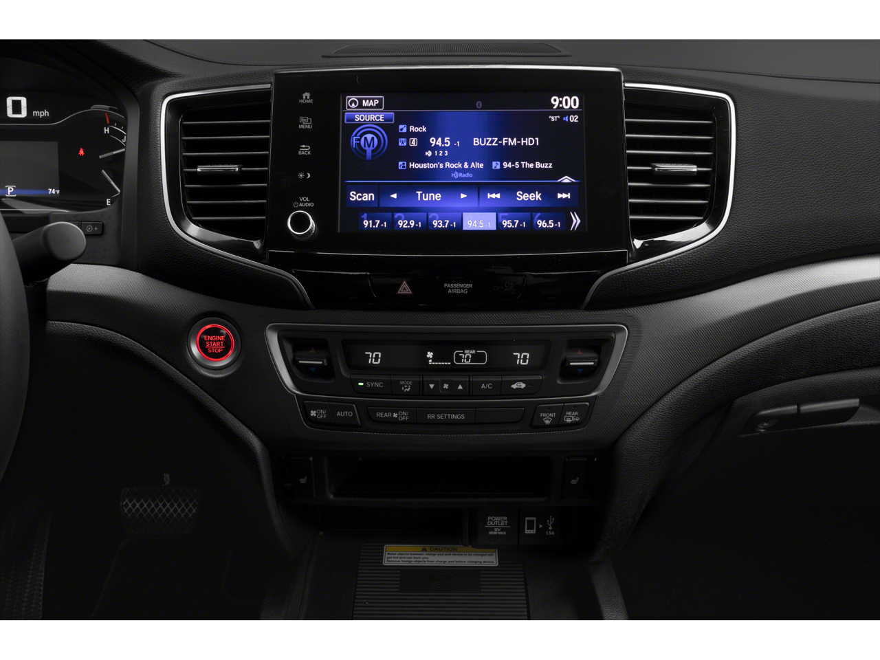This Ridgeline's sleek Blue exterior and premium interior with Perforated Leather Seat Trim exude a sophisticated and refined aesthetic. Step inside and experience the comfort and convenience of the 540-Watt Premium Audio System, Dual-Zone Automatic Climate Control, and a Heated Steering Wheel.