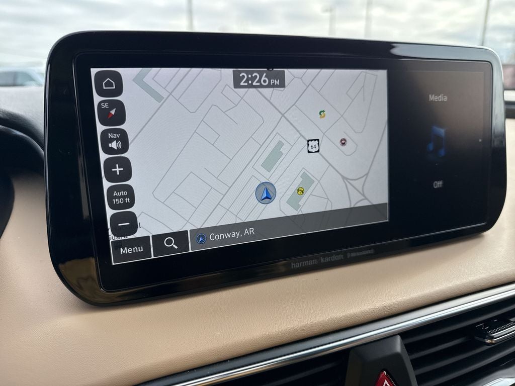 - Radio: AM/FM Harman Kardon Display Audio -inc: 10.25" display screen, 12 Speakers including subwoofer, external amplifier, Clari-Fi music restoration technology, Quantum Logic surround, SiriusXM, HD Radio, Bluelink connected car system, navigation system w/Over-the-Air (OTA) map updates, dynamic voice recognition, Apple CarPlay and Android Auto, Bluetooth® hands-free w/wireless audio streaming, steering wheel audio and phone controls, USB ports and rear seat quiet mode