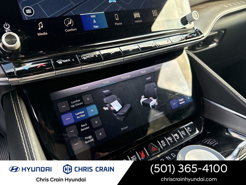 Comfort and convenience are at the forefront of the Grand Wagoneer's design, with features such as dual-zone climate control, heated and ventilated front seats, and a power liftgate ensuring a seamless and enjoyable driving experience. The vehicle's advanced safety features, including a Heads-Up Display, Automatic SOS Call, and a comprehensive suite of airbags, provide you and your loved ones with the utmost protection.