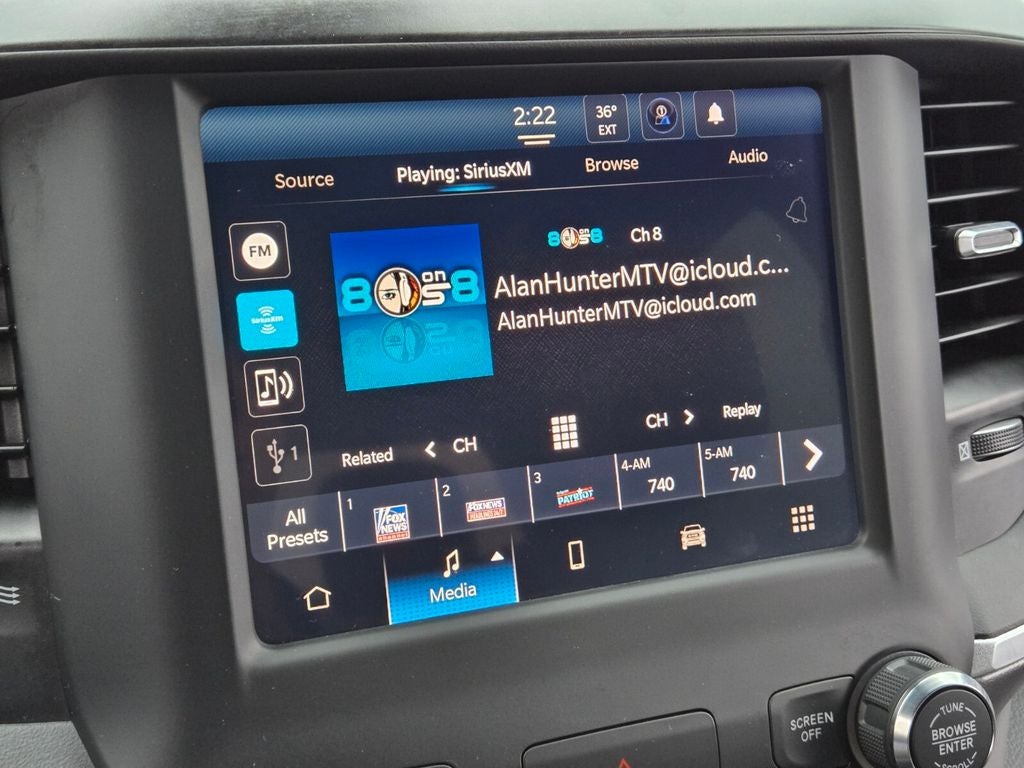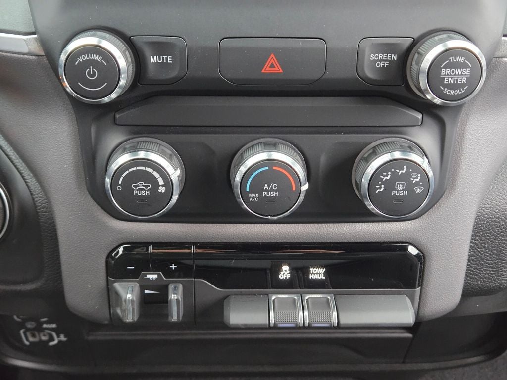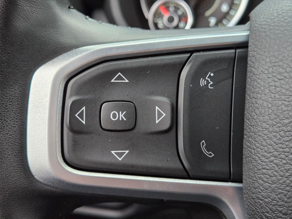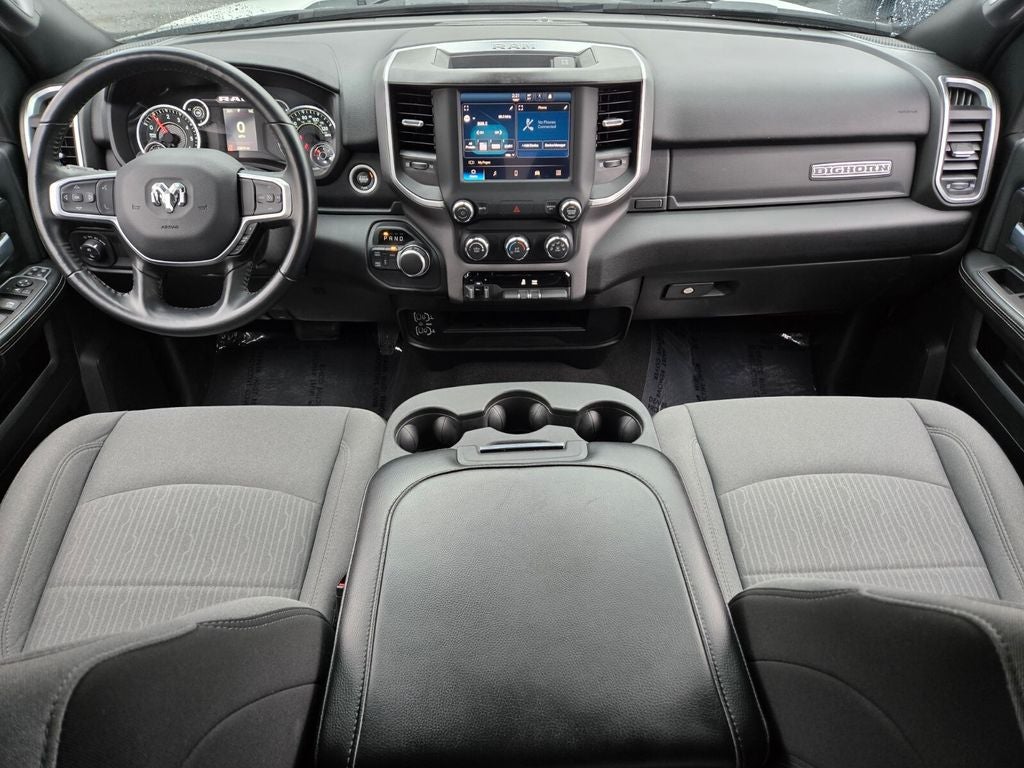 4-Wheel Disc Brakes, ABS brakes, Anti-Spin Differential Rear Axle, Bed Utility Group, Bluetooth® Handsfree Phone & Audio, Chrome Flat Cab-Length Side Steps, Compass, Connectivity - US/Canada, Delay-off headlights, Dual front impact airbags, Dual front side impact airbags, Emergency communication system: SiriusXM Guardian, Front anti-roll bar, Front Fog Lamps, Fully automatic headlights, LED Bed Lighting, Low tire pressure warning, MOPAR Deployable Bed Step, MOPAR Spray In Bedliner, Occupant sensing airbag, Outside temperature display, Overhead airbag, Panic alarm, Protection Group, Quick Order Package 2GZ Big Horn, Radio: Uconnect 5 W w/8.4 Display, Rear anti-roll bar, Remote keyless entry, Speed control, Tow Hooks, Traction control, Variably intermittent wipers, Wheels: 18 x 8.0 Steel Chrome Clad.